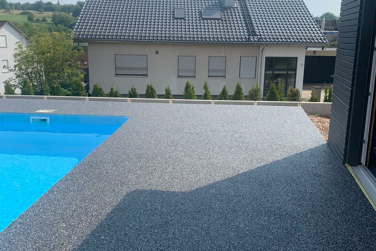 Taş halı (stone carpet) sistemi, doğal taşların özel reçineyle birleştirilmesiyle oluşturulan pürüzsüz ve zarif bir zemin kaplamasıdır. Bu sayede havuz çevresi, doğayla uyumlu bir görünüme kavuşurken, uzun yıllar boyunca ilk günkü estetiğini korur.